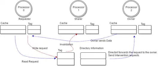 Requestor and Owner nodes maintain their state transition similar to a snoopy coherence protocols like MESI protocol. However, unlike a bus based implementation where nodes communicate using a common bus, directory based implementation uses message passing model to exchange information required for maintaining cache coherence.