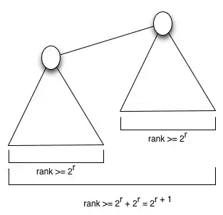 claim that as Find and Union operations are applied to the data set, this fact remains true over time. Initially when each node is the root of its own tree, it's trivially true. The only case when the rank of a node might be changed is when the Union by Rank operation is applied. In this case, a tree with smaller rank will be attached to a tree with greater rank, rather than vice versa. And during the find operation, all nodes visited along the path will be attached to the root, which has larger rank than its children, so this operation won't change this fact either.