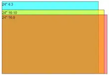 | 4:3 | 18.4 in × 13.8 in (47 cm × 35 cm) | 254.0 sq in (1,639 cm2) | 254.0 sq in (1,639 cm2) | 189.9 sq in (1,225 cm2) | 143.7 sq in (927 cm2) |