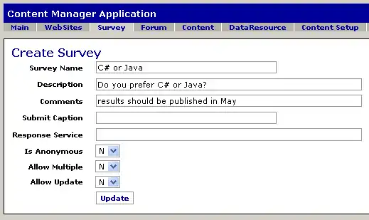 <form name="EditSurvey" type="single" target="updateSurvey"