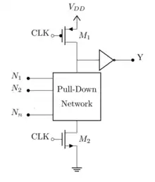 - ↑ Knepper, R.W. "5. Dynamic Logic Circuits". SC571 VLSI Design Principles. Boston University.