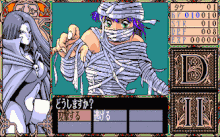 Dragon Knight II is available only in Japanese. Its gameplay system has not changed much since the first Dragon Knight game, as it is still a standard dungeon crawler with first-person view perspective and 2D graphics. The player spends most of the time navigating dungeon-like mazes and fighting enemies. As progress is made, the mazes will become more complicated, but as in the first game there is an aid for the player in the form of a mini-map with grid coordinates. The player can also visit shops and converse with non-hostile NPCs.