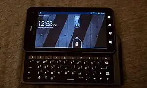 The Motorola Droid 3 is a smartphone released on July 7, 2011, by Verizon Wireless running the Android 2.3 operating system by Google. It comes with 16 GB of internal storage. The smartphone does not ship with a microSD card. It has a 4-inch qHD display and an 8-megapixel camera capable of recording 1080p video. Unlike the Droid 2, the Motorola Droid 3 features a 5-row QWERTY keyboard, with a dedicated number row. It also has a VGA front-facing camera for video calls. The Droid 3 ships with Android 2.3.4 (Gingerbread) with Motorola's updated proprietary Motoblur UI. Like other contemporary Motorola phones, it has a locked bootloader, but TWRP can be installed using the SafeStrap exploit, which allows custom ROMs to be installed. The GSM/UMTS version of the Droid 3 was known as the Milestone 3.