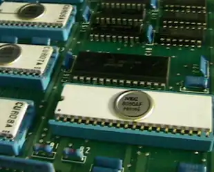 EPROMs were sold in ceramic DIPs manufactured with a circular window of clear quartz over the chip die to allow the part to be erased by ultraviolet light. Often, the same chips were also sold in less expensive windowless PDIP or CERDIP packages as one-time programmable (OTP) versions. Windowed and windowless packages were also used for microcontrollers, and other devices, containing EPROM memory. Windowed CERDIP-packaged EPROMs were used for the BIOS ROM of many early IBM PC clones with an adhesive label covering the window to prevent inadvertent erasure through exposure to ambient light.