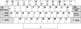 The layout was completed in 1932 and granted U.S. patent 2,040,248 in 1936.[12] The American National Standards Institute (ANSI) designated the Dvorak keyboard as an alternative standard keyboard layout in 1982 (INCITS 207-1991 R2007; previously X4.22-1983, X3.207:1991),[13] "Alternate Keyboard Arrangement for Alphanumeric Machines". The original ANSI Dvorak layout was available as a factory-supplied option on the original IBM Selectric typewriter.