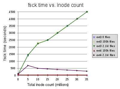 With ext4 the e2fsck runtime should come down considerably, as can be seen from the graph.