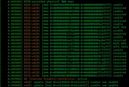 BIOS-e820 is often the first thing reported by a booting Linux kernel, and it can also be seen with the dmesg command.