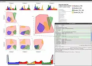 ![]() Screenshot of ELKI 0.4 visualizing OPTICS cluster analysis. | |