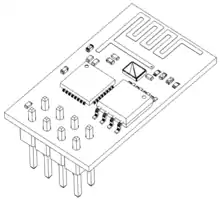 The chip was popularized in the English-speaking maker community in August 2014 via the ESP-01 module, made by a third-party manufacturer Ai-Thinker. This small module allows microcontrollers to connect to a Wi-Fi network and make simple TCP/IP connections using Hayes-style commands. However, at first, there was almost no English-language documentation on the chip and the commands it accepted.[2] The very low price and the fact that there were very few external components on the module, which suggested that it could eventually be very inexpensive in volume, attracted many hackers to explore the module, the chip, and the software on it, as well as to translate the Chinese documentation.[3]