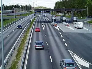 EasyGo is a joint venture between Norway, Sweden, Denmark and Austria, that enables use of a single electronic toll tag on toll roads, ferries and bridges in all the member countries.[1] The purpose of EasyGo is to enable the use of one OBE for payment when driving through any toll facility one might encounter on the way through Northern Europe and Austria.[2]