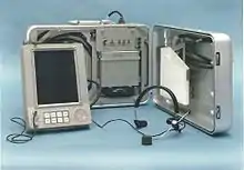 Dedicated hardware devices for ebook reading began to appear in the 70s and 80s, in addition to the main frame and laptop solutions, and collections of data per se. One early e-book implementation was the desktop prototype for a proposed notebook computer, the Dynabook, in the 1970s at PARC: a general-purpose portable personal computer capable of displaying books for reading.[29] In 1980, the U.S. Department of Defense began a concept development for a portable electronic delivery device for technical maintenance information called project PEAM, the Portable Electronic Aid for Maintenance. Detailed specifications were completed in FY 1981/82, and prototype development began with Texas Instruments that same year. Four prototypes were produced and delivered for testing in 1986, and tests were completed in 1987. The final summary report was produced in 1989 by the U.S. Army Research Institute for the Behavioral and Social Sciences, authored by Robert Wisher and J. Peter Kincaid.[30] A patent application for the PEAM device,[31] titled "Apparatus for delivering procedural type instructions", was submitted by Texas Instruments on December 4, 1985, listing John K. Harkins and Stephen H. Morriss as inventors.