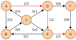 | Failed to parse (SVG (MathML can be enabled via browser plugin): Invalid response ("Math extension cannot connect to Restbase.") from server "http://localhost:6011/en.wikipedia.org/v1/":): {\displaystyle \begin{align} & \min(c_f(A,D),c_f(D,E),c_f(E,G)) \\ = & \min(3-0,2-0,1-0) = \\ = & \min(3,2,1) = 1 \end{align}} | Failed to parse (SVG (MathML can be enabled via browser plugin): Invalid response ("Math extension cannot connect to Restbase.") from server "http://localhost:6011/en.wikipedia.org/v1/":): {\displaystyle A,D,E,G} | ![]() |