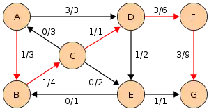 | Failed to parse (SVG (MathML can be enabled via browser plugin): Invalid response ("Math extension cannot connect to Restbase.") from server "http://localhost:6011/en.wikipedia.org/v1/":): {\displaystyle \begin{align} & \min(c_f(A,D),c_f(D,F),c_f(F,G)) \\ = & \min(3-1,6-0,9-0) \\ = & \min(2,6,9) = 2 \end{align}} | Failed to parse (SVG (MathML can be enabled via browser plugin): Invalid response ("Math extension cannot connect to Restbase.") from server "http://localhost:6011/en.wikipedia.org/v1/":): {\displaystyle A,D,F,G} | ![]() |