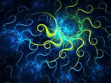 According to Mitchell Whitelaw in his Metacreation: Art and Artificial Life, "On the screen they are luminous, twisting, elastic shapes, abstract tangles and loops of glowing filaments."[2]