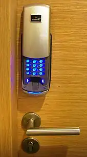 Perhaps the most common form of electronic lock uses a keypad to enter a numerical code or password for authentication. Some feature an audible response to each press. Combination lengths are usually between four and six digits long.
