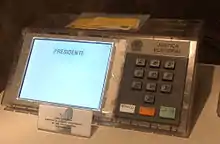 Electronic voting systems for electorates have been in use since the 1960s when punched card systems debuted. Their first widespread use was in the US where 7 counties switched to this method for the 1964 presidential election.[22] The newer optical scan voting systems allow a computer to count a voter's mark on a ballot. DRE voting machines which collect and tabulate votes in a single machine, are used by all voters in all elections in Brazil and India, and also on a large scale in Venezuela and the United States. They have been used on a large scale in the Netherlands but have been decommissioned after public concerns.[23] In Brazil, the use of DRE voting machines has been associated with a decrease in error-ridden and uncounted votes, promoting a larger enfranchisement of mainly less educated people in the electoral process, shifting government spending toward public healthcare, particularly beneficial to the poor.[24]