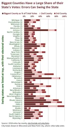 - in a 2020 election in Antrim County, MI, last minute updates to some ballots were not applied to all scanners, so the scanners had inconsistent numeric codes for different candidates and styles of ballots, causing errors of thousands of votes. Corrections happened in stages, leading to less and less confidence in the results.[34] Results were eventually confirmed by a hand count.[35]