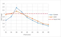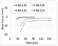 Recently, the NXE:3400B illuminator features a smaller pupil fill ratio (PFR) down to 20% without transmission loss.[57] PFR is maximized and greater than 0.2 around a metal pitch of 45 nm.[58]
