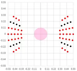 The combination of the off-axis asymmetry and the mask shadowing effect leads to a fundamental inability of two identical features even in close proximity to be in focus simultaneously.[73] One of EUVL's key issues is the asymmetry between the top and bottom line of a pair of horizontal lines (the so-called "two-bar"). Some ways to partly compensate are the use of assist features as well as asymmetric illumination.[74]