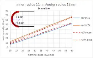 The throughput will be affect the EUV resist dose, which in turn depends on the required resolution.[60] A dose of 40 mJ/cm2 is expected to be maintained for adequate throughput.[61]