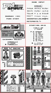 F-1 Spirit (エフワン スピリット) is a series of Formula One-based racing video games developed and published by Konami starting on the MSX in 1987.