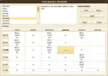 ![]() Screenshot of FET, view of teachers timetable | |
