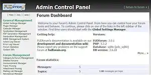 FUDforum is a free and open-source Internet forum software, originally produced by Advanced Internet Designs Inc., that is now maintained by the user community. The name "FUDforum" is an abbreviation of Fast Uncompromising Discussion forum.[2] It is comparable to other forum software. FUDforum is customizable and has a large feature set relative to other forum packages.[3]