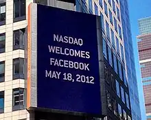 Facebook's initial public offering came on May 17, 2012, at a share price of US$38 ($50.00 in 2023 dollars[20]). The company was valued at $104 billion ($138 billion in 2023 dollars[20]), the largest valuation to that date.[83][84][85] The IPO raised $16 billion ($21.2 billion in 2023 dollars[20]), the third-largest in U.S. history, after Visa Inc. in 2008 and AT&T Wireless in 2000.[86][87] Based on its 2012 income of $5 billion ($6.64 billion in 2023 dollars[20]), Facebook joined the Fortune 500 list for the first time in May 2013, ranked 462.[88] The shares set a first-day record for trading volume of an IPO (460 million shares).[89] The IPO was controversial given the immediate price declines that followed,[90][91][92][93] and was the subject of lawsuits,[94] while SEC and FINRA both launched investigations.[95]