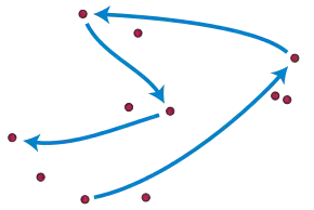 In computational geometry, the farthest-first traversal of a compact metric space is a sequence of points in the space, where the first point is selected arbitrarily and each successive point is as far as possible from the set of previously-selected points. The same concept can also be applied to a finite set of geometric points, by restricting the selected points to belong to the set or equivalently by considering the finite metric space generated by these points.[1] For a finite metric space or finite set of geometric points, the resulting sequence forms a permutation of the points, also known as the greedy permutation.[2]