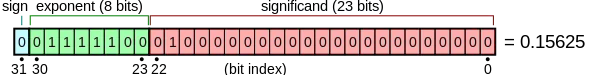 0_01111100_01000000000000000000000 1.25 × 2−3 0_00111110_00100000000000000000000 1.125 × 2−65 0_10111110_01101110101100111011111 1.432430... × 263 0_10000000_01001110101100111011111 1.307430... × 21