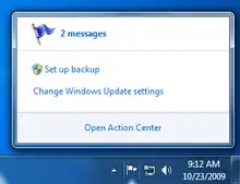 The notification area has been redesigned; the standard Volume, Network, Power and Action Center status icons are present, but no other application icons are shown unless the user has chosen them to be shown. A new "Notification Area Icons" control panel has been added which replaces the "Customize Notification Icons" dialog box in the "Taskbar and Start Menu Properties" window first introduced in Windows XP. In addition to being able to configure whether the application icons are shown, the ability to hide each application's notification balloons has been added. The user can then view the notifications at a later time.