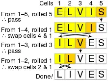 This example permutes the letters from A to H using Fisher and Yates' original method, starting with the letters in alphabetical order: