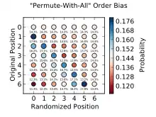 The naïve method of swapping each element with another element chosen randomly from all elements is biased.[10] Different permutations will have different probabilities of being generated, for every , because the number of different permutations, , does not evenly divide the number of random outcomes of the algorithm, . In particular, by Bertrand's postulate there will be at least one prime number between and , and this number will divide but not divide .