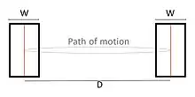 - W is the width of the target measured along the axis of motion. W can also be thought of as the allowed error tolerance in the final position, since the final point of the motion must fall within ±W⁄2 of the target's center.