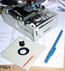 The floppy disk is a data storage and transfer medium that was ubiquitous from the mid-1970s well into the 2000s.[1] Besides the 3½-inch and 5¼-inch formats used in IBM PC compatible systems, or the 8-inch format that preceded them, many proprietary floppy disk formats were developed, either using a different disk design or special layout and encoding methods for the data held on the disk.