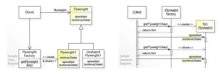 - ↑ "The Flyweight design pattern - Structure and Collaboration". w3sDesign.com. Retrieved 2017-08-12.