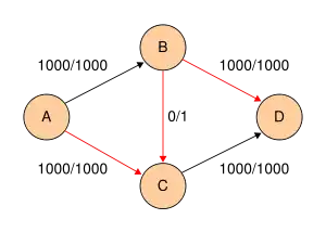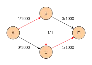 - ↑ Zwick, Uri (21 August 1995). "The smallest networks on which the Ford–Fulkerson maximum flow procedure may fail to terminate". Theoretical Computer Science. 148 (1): 165–170. doi:10.1016/0304-3975(95)00022-O.
