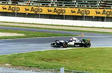 Pedro Lamy made his debut for Lotus at the 1993 Italian Grand Prix, replacing the injured Alessandro Zanardi for the final four races of the 1993 season.[5] Ahead of the fifth race of the 1994 season, Lamy was himself injured in a testing accident at Silverstone while trialling new technical regulations set out by the Fédération Internationale de l'Automobile, Formula 1's governing body, following the deaths of Roland Ratzenberger and Ayrton Senna at the 1994 San Marino Grand Prix several weeks earlier.[6] Lamy suffered broken legs and kneecaps in the crash and did not return until the 1995 season, when he raced for Minardi. He later became the first Portuguese driver to score a world championship point with a 6th-place finish at the 1995 Australian Grand Prix.[7] Following a second season with Minardi in 1996, Lamy left Formula One after 32 Grands Prix to compete in sports cars.[5]
