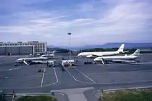 Transit to the airport was organized through a series of concessions which were issued to individual bus companies. From 1975 local buses were coordinated through Stor-Oslo Lokaltrafikk. Airport coach services to the city center were on the other hand granted to the largest airlines, Braathens SAFE and Scandinavian Airlines System (SAS). They operated each their coach service from two separate locations downtown. Various improvements to this system were proposed, including check-in in the city center.[7] The coach and bus services were generally regarded as little attractive and forty percent of passengers at the airport used taxis.[8] Fornebu was at the time still considered an option for a future main airport for Eastern Norway and there were therefore proposal to build an airport rail link.[9]