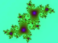 - Escape-time fractals – use a formula or recurrence relation at each point in a space (such as the complex plane); usually quasi-self-similar; also known as "orbit" fractals; e.g., the Mandelbrot set, Julia set, Burning Ship fractal, Nova fractal and Lyapunov fractal. The 2d vector fields that are generated by one or two iterations of escape-time formulae also give rise to a fractal form when points (or pixel data) are passed through this field repeatedly.