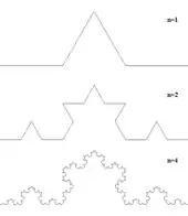 Some programs generate geometric self-similar or deterministic fractals such as the Koch curve. These programs use an initiator followed by a generator that is repeated in a pattern. These simple fractals originate from a technique first proposed in 1904 by Koch.[18]