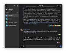 Fractal integrates well into the GNOME desktop with a clean and easy-to-use user interface design that is optimized for collaboration in big groups.[4] The functionality was still limited in early releases from spring 2018, when features such as video chat and end-to-end encryption were missing.[5] The user interface targets both smartphones and desktop systems and adapts to different screen sizes and formats.[6][7]