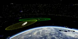 ![]() 3D Output of Proximity Zones representing Spacecraft Covariance, modeled in FreeFlyer | |