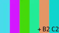 | Design | Shades of green, pink, blue and purple stripes, with byte "C0" appended in bottom right corner |