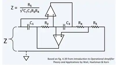 Wait gives the circuit shown to the right as suitable for a grounded FDNR.[3]: 290