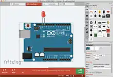 Fritzing is an open-source initiative[3] to develop amateur or hobby CAD software for the design of electronics hardware, intended to allow designers and artists to build more permanent circuits from prototypes. It was developed at the University of Applied Sciences Potsdam.[4] Fritzing is free software under the GPL 3.0 or later license, with the source code available on GitHub and the binaries at a monetary cost, which is allowed by the GPL.[5]