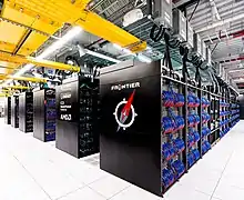 Hewlett Packard Enterprise Frontier, or OLCF-5, is the world's first exascale supercomputer. It is hosted at the Oak Ridge Leadership Computing Facility (OLCF) in Tennessee, United States and became operational in 2022. As of December 2023, Frontier is the world's fastest supercomputer. It is based on the Cray EX and is the successor to Summit (OLCF-4). Frontier achieved an Rmax of 1.102 exaFLOPS, which is 1.102 quintillion floating-point operations per second, using AMD CPUs and GPUs.[2][3][4][5][6]