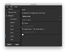 ![]() Screenshot of fyne_demo showcasing many widgets | |