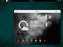 GNOME 3 was released in 2011.[45] While GNOME 1 and 2 interfaces followed the traditional desktop metaphor, the GNOME Shell adopted a more abstract metaphor with a minimalistic window management workflow, where switching between different tasks and virtual desktops occurs in a separate area called the overview.[44] The Minimize and maximize buttons were hidden by default, leaving only the close button and application name in the window decoration.[46][47]