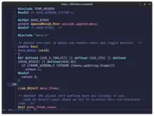 - Syntax highlighting ("font lock"): combinations of fonts and colors, termed "faces,"[29] that differentiate between document elements such as keywords and comments.